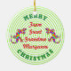 Una gran salamandra recubierta de arcoiris sonriente es perfectamente divertido para el adorno navideño del personalizado de los niños que será valorado por años. El texto del saludo de Navidad tiene unos ojos llorosos encima. Los círculos concéntricos verdes o de fondo le dan un toque perfecto. El nombre y el año del niño pueden ser personalizados. La parte posterior del ornamento tiene dos salamandras con texto que puede ser personalizado como quiera. Disfrute de una visita a otros adornos navideños en mi tienda en el sitio de Zazzle. ©AnuraDesignStudio Todos los derechos reservados