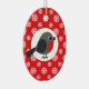 Este adorno de cerámica Navidad representa a un ladrón rodeado por un patrón de copos de nieve sobre un fondo rojo. Es una agradable adición a los decorados de tus Navidades.