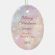 Aquí hay un adorno navideño bonito que hace un buen regalo para un pariente, amigo o vecino. Una imagen clásica de Santa Claus es vestida de rosa con su tradicional barba y bigote de flores. La imagen se coloca en un fondo de color rosa y lavanda. La parte posterior del ornamento tiene el mismo fondo de bokeh con el texto de su personalizado. Se adapta fácilmente a un regalo para cualquiera; sólo cambia el texto.