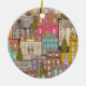 casas de navidades y árboles, originalmente dibujados con tinta.