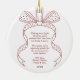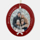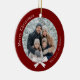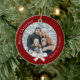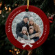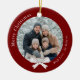 Difundir alegría por las vacaciones con esta foto personalizado adorno navideño con una proa dibujada a mano que corona tu foto favorita en un marco circular - creando. Este elegante ornamento de árbol de Navidad rojo y blanco incluye tu mensaje personalizado en la parte posterior, tu nombre de familia y una foto. ¡El perfecto obsequio de surtido o regalo de favor para amigos y familiares!