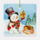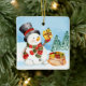 Navidades Wintery Snowman Ceramic Ornament Trae mucha más alegría navideña a tu árbol con un adorno de cerámica personalizado. Añade tus fotos, imágenes y citas favoritas en ambas caras. Incluye un hilo dorado para poder colgar este recuerdo tan especial en cuanto lo recibas.