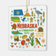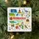 Commemorate your trip to the state of Nebraska with this modern keepsake Christmas ornament, featuring hand-drawn style illustrations of iconic food, animals, landmarks, landscapes, and culture. Personalize the back to mark your US adventure and create a memory you'll hang up on the tree for the Holidays year after year.