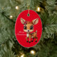 Celebra la temporada de fiestas con este adorno de cerámica oval rojo con un entrañable personalizado de animales de bosque de bosques de un lindo ciervo bebé con flores de poinsettia escondidas en el oído de la patata, y Feliz Navidad escrito en blanco. Perfecto para decorar tu árbol o como un regalo atento, esta original decoración floral de doe hace de los años venideros un lugar muy apreciado. Personalizar cambiando el texto, el tipo de letra, el color del tipo de letra o eliminando el texto. Incluso puede transferir este diseño a otros productos. ¡Disfruta este diseño a tu manera! Consulte ForestBabies Xmas Deer Collection para ver las decoraciones correspondientes. 🎄 🦌