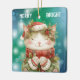 ¡Aquí hay un adorno navideño para esa nieta, hija o sobrina especial! En la parte delantera, un adorable gatito vestido con un gorra de tónica roja, bufanda y mitones. El gato sostiene tiras de hueso con bayas rojas. Un fondo de bokeh verde y azul contiene un texto blanco que dice "FERIÉNDOSE BRIGHT". La parte posterior del ornamento tiene el mismo fondo de bokeh con el texto de su personalizado. Es personalizado para ella, y fácilmente adaptado para un regalo de cualquiera; sólo cambia el texto.
