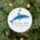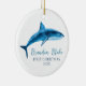 Primer adorno de cerámica de Navidad de niño bebé con un ilustracion de tiburón. Personalizado con el nombre del bebé y el año. Diseño de doble cara. Es ideal para los recién nacidos.