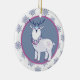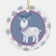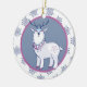 Este es un adorable adorno navideño personalizado para regalar a un hijo, hija o nieto. En la parte delantera hay una adorable imagen de reno al estilo nórdico en el centro. La imagen está hecha en colores azul, rosa violeta y blanco, y colocada sobre un fondo gris azul con un marco que combina el rosa. A continuación, la imagen enmarcada se coloca sobre un fondo de copo de nieve azul y blanco similar. La parte posterior del ornamento tiene el mismo marco de copo de nieve con el texto personalizado en el centro circular blanco. ¡Haz que diga lo que quieras! Este diseño funciona igualmente bien para un niño o un chica.
