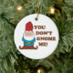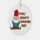 Un lindo gnomo con el divertido juego de palabras "No me jodas". Gorra rojo, camisa azul, zapatos marrones.
