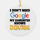 No necesito Google Mi hija sabe que todo es un diseño gracioso para una madre o papá que piensa que su hija es un sabelotodo. Idea de regalo perfecta para una madre o un padre que ama el sarcasmo y el humor.
