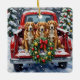 Celebrate the holiday season with this energetic and beautiful Nova Scotia Duck Tolling Retriever Christmas design! This cheerful scene features three bright, reddish-gold Tollers sitting happily in the back of a classic red pickup truck, nestled in a picturesque snowy winter forest. The vintage truck is adorned with a vibrant Christmas wreath, twinkling with red and gold ornaments and warm, glowing lights. Soft snowflakes gently fall, enhancing the winter wonderland effect. A decorated Christmas tree in the background completes this heartwarming picture, making it an ideal Christmas gift for any Toller owner, dog lover, or admirer of festive and active dog breeds. This design perfectly captures the joyful spirit of the holidays.