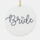 Adorno de novia con escritura moderna con el diamante sobre la i para la novia para su árbol de Navidad. Personalice la parte posterior con la fecha de la boda.