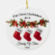 Adorno De Cerámica Nuestra primera familia navideña de tres medias