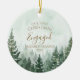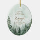 Celebra tu primera Navidad comprometido con este elegante adorno de recuerdo de vacaciones del bosque de pinos verdes. Personaliza con tus propios detalles y foto especial en el reverso. Diseñado por Thisisnotme©