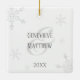Celebra tu primera Navidad como pareja casada con este adorno de foto cerámica personalizado. Adornado con un encantador diseño de copos de nieve al revés, este elegante sake se puede personalizar con tus nombres, el año y una preciada foto. Honra tu amor y crea un recuerdo duradero con este adorno encantador, perfecto para cualquier pareja que desee añadir un toque de sentimiento a su decoración festiva.