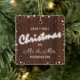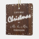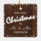 Primeras navidades casadas adorno de árbol con fondo rústico de madera, copos de nieve, un collage de fotos de recién casados y una plantilla de texto simple de mr & mrs para que usted sea personalizar.