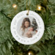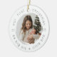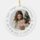 Celebra una dulce primera Navidad para los nuevos hermanos. Este adorno fotográfico redondo presenta una acogedora apariencia de papel-kraft, un texto curvo de "nuestra primera navidad" y una ventana de retrato perfecta para una hermana mayor que sostiene a su hermano bebé. Ideal para fotos de recién nacidos, regalos familiares y decoración de árbol de sake.