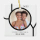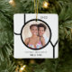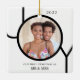 Este moderno Ornamento de Nuestra Primera Navidad como Sr. y Sra. Fotografía está decorado con la palabra JOY en negro sobre un fondo blanco. Personalizable fácil con tu foto y nombre.