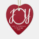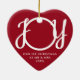 Esta primera Navidad, festiva, con forma de corazón rojo, como adorno de cerámica Mr & Mrs está decorado con la palabra "JOY" en la elegante tipografía de escritura blanca. Personalizable fácil.