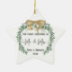 Celebrar a los Navidades con este hermoso adorno, "Nuestra primera Navidad como Sr. y Sra." En la parte superior hay una corona verde y un arco dorado de bonito. Primero, personalice este adorno con sus nombres y el año de su boda. Luego, suba una foto al fondo. Ahora, tu diseño de keepsake está completo. Este elegante adorno le añadirá ese toque especial a su árbol de Navidad.