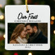 Celebra el amor y los nuevos inicios con este minimalista adorno cerámico, con la frase "Nuestra primera Navidad comprometida en 2025". Diseñado con una tipografía moderna y limpia y espacio para tu foto, es un conservador atemporal que añade elegancia a cualquier árbol de vacaciones. Un regalo para las parejas recién comprometidas y un recuerdo que apreciar año tras año.