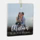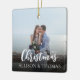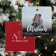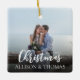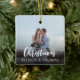 Celebra tu primera Navidad juntos con este elegante adorno de foto Nuestra Primera Navidad Sr y Sra con tipografía de caligrafía simple y una foto de pareja personalizable. Un recuerdo significativo y personalizado perfecto para recién casados, bodas, compromisos o primeros recuerdos de vacaciones como pareja casada.