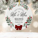 Celebra tu primera fiesta como pareja casada con nuestro Sr. y la Sra. Nuestro primer ornamento de Navidad. Este elegante ornamento, situado en un fondo blanco, cuenta con hermosas bayas botánicas, una delicada vegetación y encantadoras flores acuáticas. Personalízalo con tus nombres y fecha de boda para crear un conservador atemporal que adornará tu árbol de Navidad en los próximos años. Perfecto como regalo recién hecho o un recuerdo especial de su primera temporada de vacaciones juntos