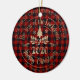 adorno de vacaciones decorativas con un guión falso de Relieve metalizado dorado para este año de pandemia y torbellinos decorativos en dos diferentes orígenes rojos y en trenzas de búfalo. información cercada está en un elegante tipo de letra lista para su personalización junto con su foto en la parte posterior