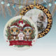 Celebra la temporada con este alegre adorno de cerámica "Nuestra primera Navidad", año y déjalo nevar" que presenta una divertida mezcla de manchas leopardo y bonitos gráficos personalizados mostrando gatitos con sombreros de santa personalizables, junto con un regalo festivo y patas de gatito rojas. Marcador de posición del marco de impresión de leopardo para la imagen. Personalizar cambiando el texto y/o los nombres. Perfecto para los amantes de los felinos, lo que lo convierte en un gran regalo para los aficionados al kitty o a la impresión animal. Añada un toque único de alegría navideña a su decoración con este Navidad único y perfecto. 🐆 🐈 🐾 ⛄️