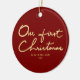 ¡Recienes casados! Conmemore su primer navidad como un par casado con este ornamento hermoso del navidad del recuerdo. El ornamento ofrece "nuestro primer navidad" en una falsa fuente maravillosamente mano-indicada con letras del oro en un fondo de color rojo oscuro. Personalice el ornamento substituyendo el apellido y el año. Más estilos y tarjetas a juego de la foto del día de fiesta, sellos, papel de envoltorio para regalos, etc. están también disponibles en nuestra tienda. Entre en contacto con por favor al diseñador directamente si usted tiene cualesquiera peticiones del arreglo para requisitos particulares del diseño.