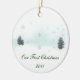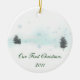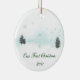 Un paisaje simple pero elegante en un ornamento que conmemora "nuestro primer navidad.