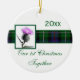Recuerde su día especial con esta hermosa cerámica redonda MacKanezie Dress Tartán y Thistle First Christmas Together ornamento de sake que tiene una flor de Escocia Thistle enmarcada en verde sobre un tartán de yeso. El tartán puede cambiarse a su propio tartán por correo electrónico. Puedes personalizar el texto para decir lo que quieras. ****Asegúrese de que el texto se encuentra donde lo desee, ya que se imprimirá tal como aparece en su monitor. Zazzle NO corregirá nada. También coincide con la invitación a la boda que se muestra a continuación. Si necesita ayuda, envíe un correo electrónico a niteowlstudio@gmail.com.