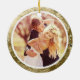 FOTO DE NAVIDAD DE NAVIDAD ORNAMENTE: "Nuestros primeros Navidades se casaron con la estrella del Purpurina de oro, ornamento de fotografía de cerámica". Un escaneo de alta calidad de la hoja de oro real, bordea ambos lados de este adorno. Guión simple "mr. y mrs." en purpurina rojo fue escrita a mano por la fotógrafa y artista con licencia internacional, Audrey Jeanne Roberts, y resaltó con una avalancha de estrellas brillantes y brillantes de oro junto con una simple estrella de Belén en purpurina de oro. Su nombre, año y fotografía se personalizan fácilmente utilizando los campos de plantilla. Copyright.