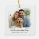 Un adorno de cerámica cuadrada de moda con una ventana de fotos de pincel pintoresco y una leyenda audaz "Hitched & Bewitched". Añade tus nombres y el año siguiente para marcar el momento. El blanco y negro limpio aplana los retratos bodas o de compromiso y los pares con cualquier árbol o envoltura de regalo. Perfecto para recién casados, aniversarios, o para un romántico placer en un stand durante toda la temporada.
