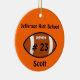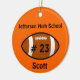 Ornamento navideño personalizado hecho en forma de naranja redondo, con nombre y número jersey en negro sobre un ícono de fútbol. Personalice el nombre o el texto según sus necesidades. Es un adorno agradable para los niños o para su jugador estrella de fútbol.