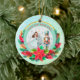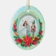 Description: Celebrate the magic of the holidays with this enchanting personalized Christmas ornament! Featuring a beautiful illustration of Clara from The Nutcracker ballet holding her beloved Nutcracker, alongside a festive Christmas tree and vibrant poinsettias, this ornament is a perfect keepsake. The front can be customized with a name (e.g., "Olivia as Clara") and the year, making it a truly unique memento. The reverse side carries a heartfelt "Merry Christmas! Wishing you a Happy and Healthy New Year. Love [Your Family Name]" message, surrounded by sparkling gold accents and a beautiful bokeh background. Crafted from a lovely teal and snowflake border, this ornament adds a touch of classic holiday charm to any tree. It's an ideal gift for ballet lovers, children, or families looking for a special way to commemorate the festive season.