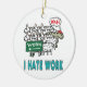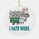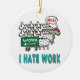 I Hate Work muestra a las ovejas marchando alegremente hacia su trabajo mientras nuestro obrero anti-héroe se dirige al revés. Las palabras "I Hate Work" que aparecen a continuación son un punto importante.