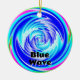 El arte abstracto azul se imprime a ambos lados del adorno... Puede cambiar las palabras o eliminarlas por completo... Si estuvieras motivado, podías poner un eslogan en el frente del adorno y otro en la parte de atrás...