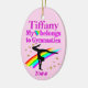 Encantada tu querida y encantadora Reina de Gimnasia con este adorno de Gimnasia personalizado y fechado. Esta impresionante gimnasta está persiguiendo sus metas y sueños para convertirse en campeona internacional de gimnasia. Este adorable adorno Gimnásico es perfecto para cumpleaños, vacaciones o cualquier ocasión y será valorado año tras año. Su estupenda gimnasta será animada a convertirse en ganadora con este inspirador ornamento de Gimnasia mostrando una deslumbrante pose Gimnástica. Para la gimnasta, eso sería más bien retozar, retorcerse y hacer giros de vuelta. ¡La gimnasia es mi vida!