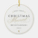 Conmemorar tu Primera Navidad Casada con nuestro Ornamento de Cerámica Casada Gold First Christmas (Oro Primero Navidad) —un conservador personalizado diseñado para capturar la magia de tu primera temporada navideña como pareja casada. Adornado con una luna de oro de nuestra colección celestial, este elegante adorno simboliza el amor eterno y la alegría de su nuevo viaje juntos. Enmarcando tu foto favorita, la media luna dorada le da un toque de encanto a tu árbol de Navidad, haciendo de este adorno no sólo una decoración festiva sino un atesorado recordatorio de tus primeras vacaciones como recién casados.