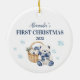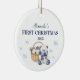 Adorno De Cerámica Oso de peluche azul personalizado primera Navidad