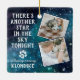 Celebra a tu mejor amigo con un adorno conmemorativo mascota personalizado . Este es el regalo perfecto para usted, familia o amigos para honrar a los seres queridos. Esperamos que su ornamento de fotos le traiga alegría, paz y recuerdos felices. Cita : "Hay otra estrella en el cielo esta noche... En Memoria Amada " Personalizar con sus propias fotos , y nombre . El ornamento es de doble cara, dos fotos por cada lado para un total de 4 fotos favoritas. Vea 'personalizar esta plantilla' para cambiar fotos y nombres . DERECHOS RESERVADOS © 2020 Judy Burrows, Black Dog Art - Todos los derechos reservados.