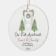 Celebrate your first apartment together with this beautifully illustrated Christmas ornament featuring a cozy front door, festive garlands, and watercolor trees. Personalize it with your names, address, and year to create a timeless keepsake that marks this exciting milestone. The hand-drawn line art and soft watercolor tones blend elegance and warmth, making it a thoughtful gift for couples starting a new chapter or celebrating their first holiday season in their new home. A meaningful decoration that captures love, joy, and new beginnings.
