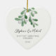Adorno De Cerámica Our First Christmas Engaged Mistletoe Photo Heart