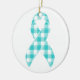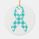 Show your support and raise awareness with this Ovarian Cancer Awareness Plaid Teal Ribbon Ceramic Ornament, featuring a striking teal ribbon set against a stylish plaid design. Perfect for decorating your Christmas tree, home, or office, this ornament honors the strength, courage, and resilience of those affected by ovarian cancer. Made from durable ceramic with a glossy finish, it combines beauty and meaning in a compact keepsake. The bold teal ribbon stands out against the plaid background, symbolizing hope, solidarity, and empowerment for the ovarian cancer community, making it a thoughtful gift or personal reminder of support.