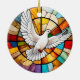 vidrio manchado de paloma blanca, pájaro colorido en vuelo, arte de vidrios multicolor, espíritu fantasma santo multicolor, sacramento de confirmación, símbolo cristiano católico religioso, signo de paz pacífico, círculo de la ventana de la iglesia cristiana, pentecostés, iconografía bíblica sagrada