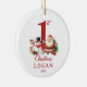 Celebra el hito de tu pequeña con nuestro Ornamento Personalizado de Primera Navidad, con un adorable Papá Noel y un muñeco de nieve. Este adorno bellamente diseñado está diseñado para conmemorar la primera Navidad de su bebé, con un gran número uno personalizado y una cita llamativa. Haga que estos Navidades sean inolvidables al capturar la alegría de la primera temporada de vacaciones de su bebé con este delicioso adorno.