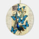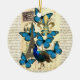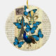 El collage digital femenino romántico elegante elegante bonito de un pájaro y mariposas y una torre Eiffel azules, París, Francia del pavo real en un fondo y un francés de la postal del papel del vintage sella con la flor de lis del oro. derechos reservados Oconnart