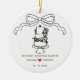 Celebra tu primera Navidad como pareja casada con nuestro adorno de "Nuestra Primera Navidad Casada". Con un encantador arco de lazo dibujado a mano y un reconfortante pastel de boda, este regalo de sake es perfecto para conmemorar su día especial. Cuelga en tu árbol para apreciar los recuerdos de tu historia de amor, o dásela a los recién casados como un recordatorio cuidadoso de su viaje juntos. Hacer de esta temporada de vacaciones algo inolvidable con un toque de romanticismo y elegancia.