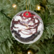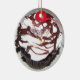Una deliciosa foto de un quequito de chocolate con una cereza en la parte superior de la comida adorno de Navidad. ¡Recoge todos nuestros adornos de comida!