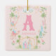 This traditional Christmas ornament features a nativity image of baby Jesus sleeping in a manger with Mary and Joseph in the center surrounded by a the wise men and two angels. In the center you can add your initial and a name.